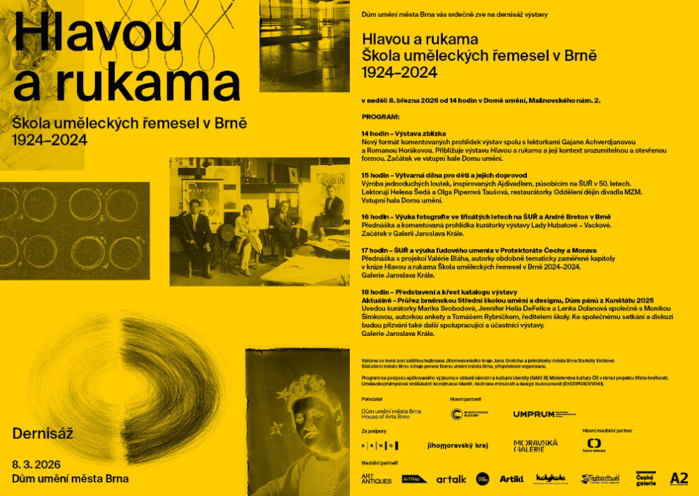 Dernisáž výstavy s doprovodným programem proběhne v neděli 8. března 2026 od 14:00 v Domě umění města Brna