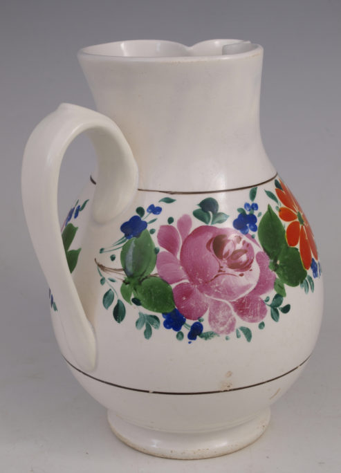 Džbán, glazovaná bělnina, Olomoučany konec 19. stol., stav před restaurátorským zásahem, restauroval Filip Řezník
